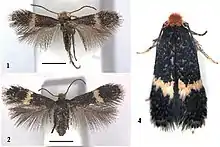The wingspan is 4.0-6.6 mm. Adults are on wing in August, October and from January to March. There are two or more generations per year.[1]