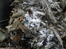 Although there is evidence that certain species of mycorrhizal fungi may obtain at least a portion of their carbon via saprotrophic nutrition,[17] the bulk of mycorrhizal carbon acquisition happens by way of trading for host-derived photosynthetic products. Mycorrhizal systems represent a major carbon sink. Laboratory studies predict that around 23% of plant-derived carbon is allocated to extrametrical mycelium,[18] although an estimated 15-30% of this is lost to fungal respiration.[19][20] Carbon allocation is distributed unequally to extramatrical mycelium depending on fungal taxa, nutrient availability, and the age of the associated mycorrhizas.[21][22] Much of the carbon allocated to extramatrical mycelium accumulates as fungal biomass, making up an estimated one-third of the total microbial biomass and one-half of the total dissolved organic carbon in some forest soils.[4] Carbon also supports the production of sporocarps and sclerotia, with various taxa investing differentially in these structures rather than in the proliferation of extramatrical mycelium. Carbon acquisition also goes toward the production of fungal exudates. Extramatrical hyphae excrete a range of compounds into the soil matrix, accounting for as much as 40% of total carbon usage.[23] These exudates are released primarily at the growing front, and are used in functions such as mineralization and homeostasis.[24]