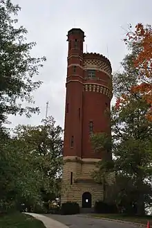 The city constructed a 12 acres (4.9 ha), 96 million gallon reservoir between 1866 and 1878.[3] The Eden Park Station No. 7 pumped water from the Ohio River into the reservoir and then into the Eden Park Stand Pipe.[4] The reservoir was removed in the early 1960s and the site redeveloped into the Mirror Lake reflecting pool and baseball fields.[5] The former reservoir's dam, Eden Park Station No. 7, and Eden Park Stand Pipe still stand as historical remnants.