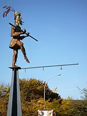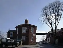 The reservoir and gatehouse were designed by Thomas Telford and the latter is a two-storey listed building in corporate BCN octagonal style, with a later extension dating from 1880.[8] In 1873, the reservoir was crossed by Charles Blondin, on a tightrope. His feat is marked by a 1992 statue on the nearby Ladywood Middleway ring road.[9]