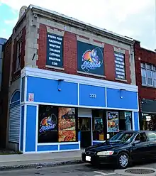 Unlike their forbearers who were forced to move into resource-deprived slums, newcomers in Edgerton benefited immensely from the institutional frameworks earlier Ninth and Tenth Warders had left behind. This included the Republican ward establishment, which elected the first Italian-American in Rochester's history in 1915, sent the first Italian-American to the city legislature in 1925, and made Edgerton the "foothold" for Italian-American politics.[35] And unlike the Black and Asian immigrants who would come after them, the Italians of Edgerton were supported by a wealthy institution that poured resources and power into the neighborhood: the Roman Catholic Church. After bringing to Edgerton the first Italian Catholic church in Rochester, St. Anthony of Padua, the Holy See brought established institutions like the Holy Rosary church, rectory, school, and convent, a Carmelite monastery, a Sisters of St. Joseph convent, and a Knights of Malta temple.[31][35][11] With these new residents and resources, Edgerton became filled with bakeries, theaters, a Christadelphian church, the headquarters of Lawyers Cooperative Publishing, Chevrolet and Ford dealerships, grocery stores, funeral homes, gas stations, auto repair shops, florists, financial institutions, and other entities that defined a thriving urban neighborhood in the 20th century – including, notably, The Tenth Ward Courier, a community paper that covered local historical, political, and social goings-on into the 1990s.[36][37][11][17]