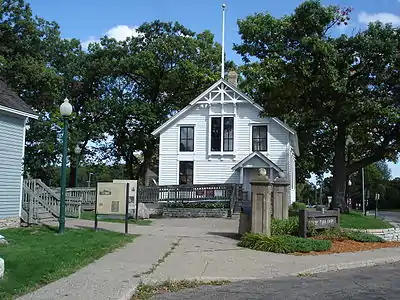 In 1859, when Edina was still the western part of Richfield Township, residents of what would become northern Edina organized school district 17 and built the district's first school.[4] It was a one-room, white frame building built at Code's Corner, which today is occupied by Normandale Lutheran Church at West 62nd Street and Minnesota State Highway 100. At the time it was evident that Edina was still a farming town, since school vacations coincided with spring planting and fall harvesting so the children could help in the fields.