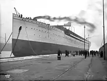 Harland and Wolff built Edinburgh Castle at Belfast, launching her on 27 January 1910[2] and completing her that April. When she was opened for public inspection on Whit Monday, 16 May 1910 about 1,000 people boarded her. On 21 May 1910 Edinburgh Castle sailed for South Africa.[3] Edinburgh Castle and her sister ship Balmoral Castle[Note 1] were at the time the largest and most powerful vessels in the South African trade.[4]
