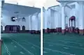The main hall is where the Friday prayer (Jumu'ah) and the five daily prayers (salat) are held. There are two chandeliers, a vast carpet, and chairs for the elderly and disabled. Many short lectures and small discussion groups are held here, although such groups must give notice. The mosque also offers funeral services and the prayer Salat al-Janazah. There are two side entrances to the hall and a small glass room which also has a separate entrance/exit with a ramp for the disabled.