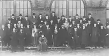 The Edison Pioneers was an organization composed of former employees of Thomas Edison who had worked with the inventor in his early years. Membership was limited to people who had worked closely with Edison before 1885.[1] On February 11, 1918, the Edison Pioneers met for the first time, on the 71st birthday of Edison. There were 37 people at the first meeting. Edison himself was not present; it was announced he was "engaged in important government service".[2] It was suspected he was working on a military project since World War I was still in progress.[2] The organization had 100 members although in later years descendants of Edison Pioneers were also allowed membership.
