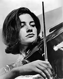 In 1956, she won the first prize in the International Competition of the German Radio in Munich. At that competition, conductor William Steinberg, who was among the judges, invited her to make her American debut with the Pittsburgh Symphony Orchestra, which she did in 1962. Word spread among Germany's conductors, such as Max Rudolf, about her achievements in the U.S., including her Cleveland debut where she played Dvorak's Violin Concerto.[3] Reviews of that concert were positive, with Carl Apone noting that Dvořák's concerto was "a proving ground on which to separate the men from the boys:"[5]