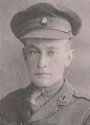 He served with The Queen's Own Rifles of Canada for a period of six months prior to his enlistment as a private on 16 November 1914 in the 31st Battalion-Alberta Regiment, Canadian Overseas Expeditionary Force.[3] He arrived in France with 2nd Division of C.E.F. in September 1915. He saw action in the Battle of the Somme (1916) and at Vimy Ridge (1917). He earned a commission in September 1917 in the British Army.[4]
