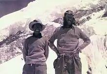 In 1951 he was part of a British reconnaissance expedition to Everest led by Eric Shipton,[24][lower-alpha 1] before joining the successful British attempt of 1953. In 1952, Hillary and George Lowe were part of the British team led by Shipton, that attempted Cho Oyu.[25] After that attempt failed due to the lack of a route from the Nepal side, Hillary and Lowe crossed the Nup La pass into Tibet and reached the old Camp II, on the northern side, where all the previous expeditions had camped.[26]