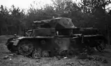As a result of the battle the commander of the German platoon and heir to the Duchy of Racibórz, 23-year-old Silesian prince and lieutenant Viktor IV Albrecht Johannes von Ratibor, who rode in the Panzer IV, was killed.[4][3] There is an established version, coming from Janusz Magnuski's works, based solely on Orlik's accounts, that only Orlik's tankette had a 20mm cannon; the others were equipped with machine-guns, and Orlik destroyed all three tanks.[2] However, there are other sources, that all three Polish TKS were armed with 20mm cannons.[5] Moreover, a history of Polish armoured weapons written in 1971 in London does not mention Orlik, listing three other participants of the skirmish at Pociecha out of six Polish tankers (names: Tritt, Pachocki and Łopatka).[6]