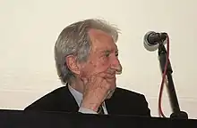 ![]() Edoardo Sanguineti at a meeting in Genoa on lexicon and Open Source publications. | |