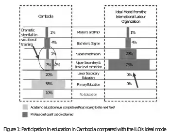 This results in a very high percentage of the Cambodian labour force lacking any formal trade qualifications. The vast majority of university students come from wealthy families living in the cities, whereas the majority of basic-level technicians come from low-income families.[29]