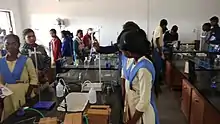 As per the Annual Status of Education Report (ASER) 2012, 96.5% of all rural children between the ages of 6–14 were enrolled in school. This is the fourth annual survey to report enrolment above 96%. India has maintained an average enrolment ratio of 95% for students in this age group from year 2007 to 2014. As an outcome the number of students in the age group 6–14 who are not enrolled in school has come down to 2.8% in the academic year 2018 (ASER 2018).[24] Another report from 2013 stated that there were 229 million students enrolled in different accredited urban and rural schools of India, from Class I to XII, representing an increase of 2.3 million students over 2002 total enrolment, and a 19% increase in girl's enrolment.[25] While quantitatively India is inching closer to universal education, the quality of its education has been questioned particularly in its government run school system. While more than 95 per cent of children attend primary school, just 40 per cent of Indian adolescents attend secondary school (Grades 9–12). Since 2000, the World Bank has committed over $2 billion to education in India. Some of the reasons for the poor quality include absence of around 25% of teachers every day.[26] States of India have introduced tests and education assessment system to identify and improve such schools.[27] The Human Rights Measurement Initiative finds that India is achieving only 79.0% of what should be possible at its level of income for the right to education.[28]