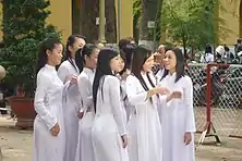 High school or upper secondary school education (Vietnamese: trung học phổ thông) consists of grades ten to twelve. There is often an entrance examination for high schooling. The score determines the schools at which students are able to enroll. The higher the score, the more prestigious the school.[21]