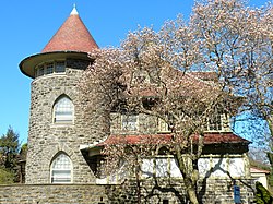 Edward B. Seymour House is a historic home located on the Germantown-Mount Airy neighborhood boundary of Philadelphia, Pennsylvania. It was built in 1891, and is a 2+1⁄2-story, Wissahickon schist and shingle dwelling in the Queen Anne-style. It features a rounded corner tower topped by a conical roof and a stepped gable. The house was designed by gilded age architect, Horace Trumbauer. Also on the property is a contributing garage, built in 1909.[2]
