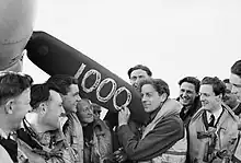 Charles returned to operations in January 1943, having been posted to No. 64 Squadron.[4] A Spitfire squadron, this was part of the fighter wing at Hornchurch, tasked with sweeps and escort missions to occupied Europe.[11] After nearly three months, during which he damaged a Focke Wulf 190 while on a sortie inland of Dunkirk, he was transferred to No. 611 Squadron as a flight commander.[4] His new squadron, using the Spitfire Mk IX, was based at Biggin Hill as part of the fighter wing there.[12] He made his first claim with the unit on 18 April, destroying a Fw 190 over the Bay d'Authie. A few days afterwards he was given command of the unit. He damaged a Fw 190 on 4 May, and three days later repeated the feat, this time with a Bf 109. He shot down a Fw 190 on 14 May and the next day, flying to the southeast of Caen, destroyed a pair of Fw 190s. The second of these may have been the 1,000th aircraft to have been destroyed by a squadron of the Biggin Hill. As Commandant René Mouchotte, the commander of No. 341 Squadron also shot down a Fw 190 at about the same time, the two shared a sweepstake that was running for the pilot that claimed the 1,000th aircraft. Two days afterward, he shot down yet another Fw 190 near Cabourg. He destroyed a further example of the same type on 23 June and claimed a second as damaged on 5 July.[1][4] His successes was rewarded with an announcement of a bar to his DFC on 16 July; the published citation read: