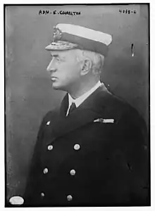 Charlton joined the Royal Navy in 1878 and served in the Anglo-Egyptian War in 1882. Promoted to the rank of captain on 1 January 1903,[1] he was made Captain (Destroyers) in the Home Fleet in 1904.[2] He went on to be assistant director of torpedoes from 1911.[3] He served in World War I as Admiral Commanding East Coast Minesweepers from 1914 and then as Commander-in-Chief, Cape of Good Hope Station from 1916.[4] After the War he became Flag Officer commanding the East Coast of England.[5] He retired in 1924.[6]