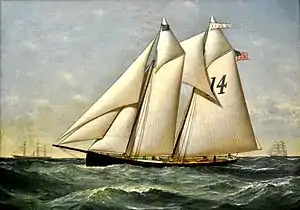 New York pilot-boat Edward F. Williams No. 14 was built 1863 at the Edward F. Williams shipyard in Greenpoint, Brooklyn. The boat number "14" was painted as a large number on her mainsail, that identified the boat as belonging to the Sandy Hook Pilots. She was launched on April 28, 1863 from the Edward F. Williams yard for the Sandy Hook pilots. She was built for company of pilots that owned the Forrest, No. 14, which was wrecked on Long Island in 1862.[1]