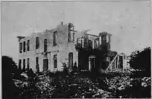 In 1856, Perine purchased a brick factory building at the foot of Vine Street in Cahaba and hired architect John G. Snediker to prepare plans to convert the factory into a two story mansion with twenty-six rooms. The first floor included two parlors (20 feet by 27 feet each), separated by sliding doors, a dining room (also about 20 feet by 27 feet), a sitting room, a library, two entry halls and vestibule. The second floor had bedrooms and nurseries. An attached wing included a kitchen, a laundry, a breakfast room, pantries, servants' quarters and other features.[2] On the grounds of the estate were a conservatory, vineries, and an artesian well, with a flow now estimated at 1,250 gallons per minute. At the time it was thought to be the deepest well in the world, at nine hundred feet. It had a stream of water gushing and falling into a large cement basin, from which it was channeled off through the grounds in cement branches to the pastures beyond. Water from this well was also forced through pipes into the mansion, making it the first air conditioned home in Alabama.[3][4]