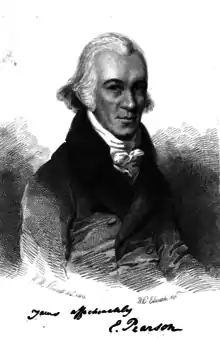 He was born at St. George's Tombland in Norwich on 25 October 1756, eldest son of Edward Pearson (d. 1786) a wool-stapler there, who shortly moved to Tattingstone, Suffolk and was governor of the local poorhouse. He was educated at home, and entered Sidney Sussex College, Cambridge as sizar, on 7 May 1778. The Rev. John Hey, the college tutor, who held the rectory of Passenham, Northamptonshire, appointed him his curate (26 April 1781).[1]