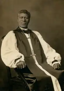 After his 1918 consecration as a bishop at All Saints' Church in St. Louis,[8][9] Demby became suffragan bishop of Arkansas (the first African American to become bishop, although James Theodore Holly had become bishop of Haiti and Archdeacon James Solomon Russell of Virginia (likewise an educator and missionary among African Americans) had declined the Arkansas position, as W.E.B. DuBois noted.[10]) Demby worked with black hospitals, schools and orphanages, as well as sought full recognition of African Americans within the Episcopal Church.[11][12] He found that he had no salary and no official residence, and described the experience as "building bricks without straw."[13] In 1922, the national church began paying him a salary, some of which he used to establish Christ Church Parochial and Industrial School in Forrest City, Arkansas.[14] Demby also dealt with the fallout from Bishop William Montgomery Brown's joining the Old Catholic Church, which had led to an Episcopal Church trial for heresy and Brown's deposition in 1925.[15]
