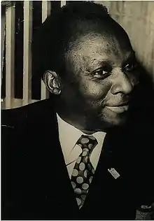 Blyden interrupted his graduate studies in 1954 to return to Sierra Leone where he took up a position as head of Extra Mural Studies at Fourah Bay College. He became increasingly active in the politics of independence and after a sensational series of Town-Hall lectures, he formed the Sierra Leone Independence Movement in 1957. Promoting the view that a newly independent Sierra Leone would not be well served by the fractious nature of party politics, he galvanised his followers with the Movement's signature call and response: "What's the Word? SLIM!" Prominent supporters of SLIM included regional and international Pan-Africanists like Nnamdi Azikiwe, Kwame Nkrumah, George Padmore, Eric Williams, Julius Nyerere and John Henrik Clark who viewed the progress towards independence in Sierra Leone[5] as part of a wider effort to forge an independent West Africa united by the same socio-political principles. In 1957, Blyden and Paramount Chief and Member of Parliament Tamba Songou Mbriwa of Fiama Chiefdom, Kono District lodged a formal protest at the Colonial Office in London against the illicit exploitation of Sierra Leone's diamonds, demanding a Royal Commission of Enquiry into serious riots in the Kono District. In the pre-elections of 1957, SLIM won no seats which disappointed Blyden and his supporters within and without the country.[6] Blyden and Mbriwa went on to form an alliance, merging their parties to form the Sierra Leone Progressive Independence Movement (SLPIM)