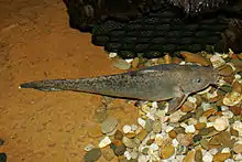 The eel-tailed catfish, Tandanus tandanus, is a species of catfish (order Siluriformes) of the family Plotosidae.[2] This fish is also known as dewfish, freshwater catfish, jewfish, and tandan.[3]