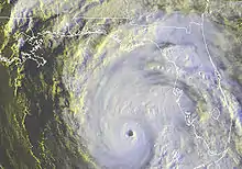 ![]() Hurricane Dennis a few hours before landfall on July 10 | |