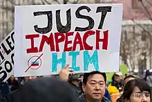 There was a brief debate about impeaching the president before a privileged resolution introduced by Representative Al Green was withdrawn.[81][82] In late October, progressive activist hedge-fund manager Tom Steyer funded an impeachment campaign that quickly garnered 1.3 million signatures.[83] By mid-November, the campaign had garnered over 1.9 million signatures;[84] the campaign's signature count reached over 6.5 million by the following month.[85]