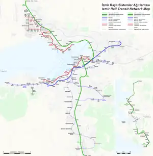 | Aliağa-Cumaovası | 78 km (48 mi) | 3 | Menemen, Konak, Bayraklı, Karşıyaka, Çiğli, Buca, Gaziemir, Menderes |