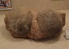Fossil fish eggs have an extensive record going at least as far back as the Devonian and spanning into the Cenozoic era. The eggs of many different fish taxa have contributed to this record, including lobe-finned fish, placoderms, and sharks. Occasionally eggs are preserved still within the mother's body, or associated with fossil embryos. Some fossil eggs possibly laid by fish cannot be confidently distinguished from those laid by amphibians.[5] Several fossilized fish or amphibian eggs have been classified as ichnogenera, including Mazonova,[6] Archaeoovulus, Chimaerotheca, Fayolia, and Vetacapsula.[7]