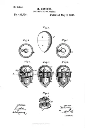 A Columbus Egg puzzle using a rolling ball was described in an 1893 book.[1] The Montgomery Ward catalog of 1894 includes a "Columbus Egg" toy.[2]