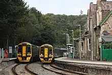 Eggesford railway station is a rural station in Devon, England, serving Eggesford, the town of Chulmleigh and surrounding villages. Despite its name, the station is in the neighbouring civil parish of Chawleigh.[2] It is on the Tarka Line to Barnstaple, 22 miles 27 chains (35.9 km) from Exeter Central at milepost 193.75 from London Waterloo.[3]