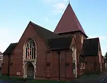 Egham Hythe gained its first school in the 1880s and its own parish church, having separated from Egham's in 1930. Much of the campaigning and financial support for the church came from local resident and entrepreneur Edward Budgen.[9][10]
