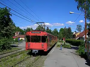 Egne hjem was an Oslo Metro and Oslo Tramway station on the Kolsås Line located in Bærum, Norway. The station was situated between Ringstabekk and Bekkestua, 10.8 kilometres (6.7 mi) from Stortinget.