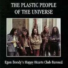 Egon Bondy's Happy Hearts Club Banned is an album by Czech underground band The Plastic People of the Universe. It was recorded in 1974/75, mainly at Houska Castle, enabled by the castle's then warden Svatopluk Karásek, with some songs being recorded in Prague.[2] The album could not be officially released and distributed under the former Communist regime in Czechoslovakia; instead fans duplicated tapes with one another, often resulting in poor technical quality. It was released in 1978 in France by SCOPA Invisible Production.[3] In the Czech Republic a remastered version was published in 2001 by Globus Music.[4] The album title is a parody of The Beatles' album Sgt. Pepper's Lonely Hearts Club Band. Most of the songs on the record are settings of poems by Egon Bondy. The author of the album title is Ivan Hartl, a Czechoslovak emigrant living in London.