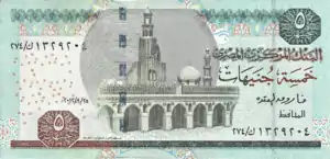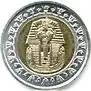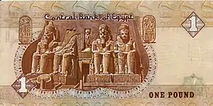 All Egyptian banknotes are bilingual, with Arabic texts and Eastern Arabic numerals on the obverse, and English texts and Western Arabic numerals on the reverse. Obverse designs tend to feature an Islamic building with reverse designs featuring Ancient Egyptian motifs (buildings, statues and inscriptions). During December 2006, it was mentioned in articles in Al Ahram and Al Akhbar newspapers that there were plans to introduce £200 and £500 notes. As of 2019, there are £200 notes circulating but there are still no plans for issuing £500 notes.[22] Starting from 2011 the 25 PT, 50 PT and £1 banknotes were phased out in favour of more extensive use of coins. However, as of June 2016 the National Bank of Egypt reintroduced the £1 banknote into circulation[23] as well as 25 PT and 50 PT notes in response to a shortage of small change.