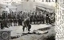 German and Japanese soldiers witnessing the street execution of a Chinese boxer