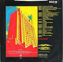 "Eighties" is the lead single from English post-punk band Killing Joke's fifth studio album, Night Time (1985), produced by Chris Kimsey. The song had been premiered during a three track live performance for UK TV show the Tube in December 1983.[1] Upon its release, the single reached No. 60 in the UK Singles Chart.