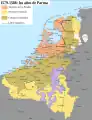 The years 1579–1588 constituted a phase of the Eighty Years' War (c. 1568–1648) between the Spanish Empire and the United Provinces in revolt after most of them concluded the Union of Utrecht on 23 January 1579, and proceeded to carve the independent Dutch Republic out of the Habsburg Netherlands. It followed the 1576–1579 period, in which a temporary alliance of 16 out of the Seventeen Provinces' States–General established the Pacification of Ghent (8 November 1576) as a joint Catholic–Protestant rebellion against the Spanish government, but internal conflicts as well as military and diplomatic successes of the Spanish Governors-General Don Juan of Austria and Alexander Farnese, Duke of Parma split them apart, finally leading the Malcontent County of Artois, County of Hainaut and city of Douai to sign the Union of Arras on 6 January 1579, reverting to Catholicism and loyalty to the Spanish crown.[1][2][3] In response, most of the remaining rebel provinces and cities would forge or later accede to the Union of Utrecht,[4] a closer military alliance treaty that would go on to become the most important fundamental law of the United Provinces,[5] who on 26 July 1581 proclaimed the Act of Abjuration, a de facto declaration of independence from Spain.[6] While the nascent polity was struggling to find a new sovereign head of state, including Matthias of Austria, Francis of Anjou, William "the Silent" of Orange and Robert of Leicester,[6] before giving up and deciding to become a republic by passing the Deduction of Vrancken on 12 April 1588,[7] the Duke of Parma continued his successful military and diplomatic offensive, bringing ever more provinces and cities in the southern, eastern and northeastern parts of the Netherlands back into royalist hands.[6] Parma's reconquests more or less stalled after the Fall of Antwerp (1585),[8] and finally came to an end with the failure of the Spanish Armada (July–August 1588) and Philip II ordered him to intervene in the French Wars of Religion (September 1589) to prevent the Succession of Henry IV and France becoming a Protestant kingdom.[8] These developments gave rise to a new phase,[8] the Ten Years (1588–1598), that saw significant conquests by the Dutch States Army under the leadership of stadtholders Maurice of Nassau and William Louis of Nassau-Dillenburg, and the Dutch Republic's rise as a commercial great power.[9][10]