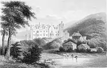 The house was built in 1802 for the Royal Navy surgeon Thomas Mein.[6][7][8] Extensions were designed by the famous Scottish architect William Burn[6] for the fifth Duke of Buccleuch, who bought the house in 1838[2] and wanted to use it as a base during the fox hunt season.[9] The fifth Duke founded the Buccleuch Hunt in 1827; it chases the fox from the foothills of the Cheviot to the Lammermuir Hills.[10] Princess Alice's memoirs, which she published in 1983, further the impression of Eildon Hall was a base for the fox hunting season. She mentions that her uncle Lord George Scott came often, as he was then Master of the Buccleuch Hunt; another paternal uncle, Lord Henry Scott, was equally enthusiastic about the hunt, who brought his friend, Cospatrick Douglas-Home, 11th Earl of Home. Princess Alice wrote: "Two days a week Uncle Henry and Cospatrick disappeared into Edinburgh to do something at a bank and thought themselves very hard worked; the rest of their time was spent hunting, shooting or fishing."[1] Alice herself was keen on these activities, as testified to in the Illustrated London News, which wrote: "She was always very keen about hunting, and when at Eildon Hall missed very few meets."[11]