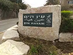 The neighborhood, founded in 1937 by Arab families, was previously called Wadi al-Jimal. The neighborhood was called "Ein HaYam -- Wadi al-Jimal" until 2006, when the official name and entrance sign were changed to "Ein HaYam (Previously Wadi al-Jimal)." In August 2021, the Haifa Naming Commission recommended restoration of the old name and signage[1] and received pushback from some officials.[2] The city council has yet to vote on the proposal.