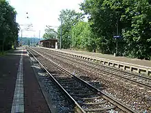 Eisenach West station is a halt (Haltepunkt) on the Halle–Bebra railway (Thuringian Railway) in the town of Eisenach in the German state of Thuringia.