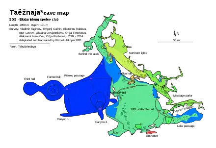 - Curihin, Evgenij (1 December 2020). "Таежная" [Taëžnaja (cave)]. speleoatlas.ru – Caving atlas of Russia and the Commonwealth of Independent States (CIS) (in Russian). Русское географическое общество / Russian Geographic Society. Retrieved 21 July 2021.