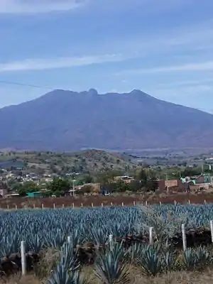 Santa Quintera is a hacienda located northeast of the town of El Arenal. The hacienda contains both agave fields as well as rocky hills with pine and holm oak forest. It is also home to the Mesa Alta archeological zone belonging to the Volador culture. It contains two Mesoamerican ballcourts along with a circular pyramid.[2]
