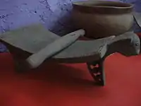 - Grinding stones or metates, three supports, 4 supports, unsupported, curved, table type, flat, with feline heads, etc. (The museum has over 50 of these pieces).