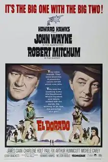 El Dorado is a 1966 American Western film directed and produced by Howard Hawks and starring John Wayne and Robert Mitchum. Written by Leigh Brackett and loosely based on the novel The Stars in Their Courses by Harry Brown, the film is about a gunfighter who comes to the aid of an old friend who is a drunken sheriff struggling to defend a rancher and his family against another rancher trying to steal their water. The supporting cast features James Caan, Charlene Holt, Paul Fix, Arthur Hunnicutt, Michele Carey, R. G. Armstrong, Ed Asner, Christopher George, Adam Roarke and Jim Davis.