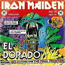"El Dorado" is the second track from English heavy metal band Iron Maiden's 2010 album The Final Frontier. The song is the band's forty-first single, and the only one from the album. It is also the last single to use the band's alternate logo. It was released as a free download on the band's official site at 00:01 on 8 June 2010 (UTC), one day before the album's supporting tour began.[2] Released ten weeks before The Final Frontier, it marks the longest time between the release of an Iron Maiden single and the studio album it is featured on since 1980's "Running Free". The cover art was created by Anthony Dry and is based on the covers of the EC Comics published by William Gaines that were popular in the 1950s. Regarding the early online release of the song, vocalist Bruce Dickinson explained, "El Dorado is a preview of the forthcoming studio album. As we will be including it in the set of our Final Frontier World Tour, we thought it would be great to thank all our fans and get them into The Final Frontier mood by giving them this song up front of the tour and album release."[2]