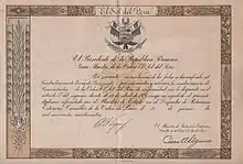 It was discontinued four years later, after many grantees started to use the award as a nobility title, similar to the earlier Castile titles awarded by the colonial government. The Congress issued a law abolishing the Order of the Sun on May 9, 1825.