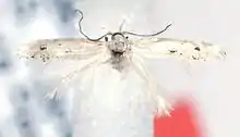 The wingspan is about 7 millimetres (0.28 in) for males. The forewings and hindwings are pale.