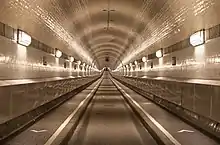In the tunnel an art exhibition[2] and a long-distance running event Elbtunnel-Marathon[3] take place.[4] In 2008 the tunnel participated in the Tag des offenen Denkmals ("Day of the open heritage site"), a Germany-wide annual event sponsored by the Deutsche Stiftung Denkmalschutz that opens cultural heritage sites to the public.[5]